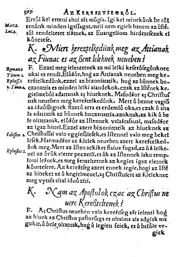 Az kereztieni igaz hitnek reszeiroel valo tanitas kerdesekkel es feleleteckel, ellenvetesekkel es azoknak meg feitesiuel, az hiueknek eppueletekre / irattatot es mostan vyonnan meg oeregbittetet Feleghazi Thamas debreczeni praedicator altal; Ez melle adattatot roeuid catechismus / Félegyházi Tamás