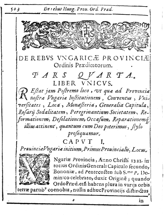 De rebus Hungaricae provinciae ordinis praedicatorum, partibus quatuor, et octo libris distributi commentarii
